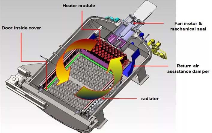 - Heizungen, Wärmetauscher und Gebläse befinden sich im Inneren des Druckbehälters.