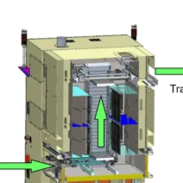 Ein vertikaler Aushärteofen mit geringer Stellfläche und einer einzigen Säule, die weniger als 4 Fuß Platz im Reinraum benötigt.